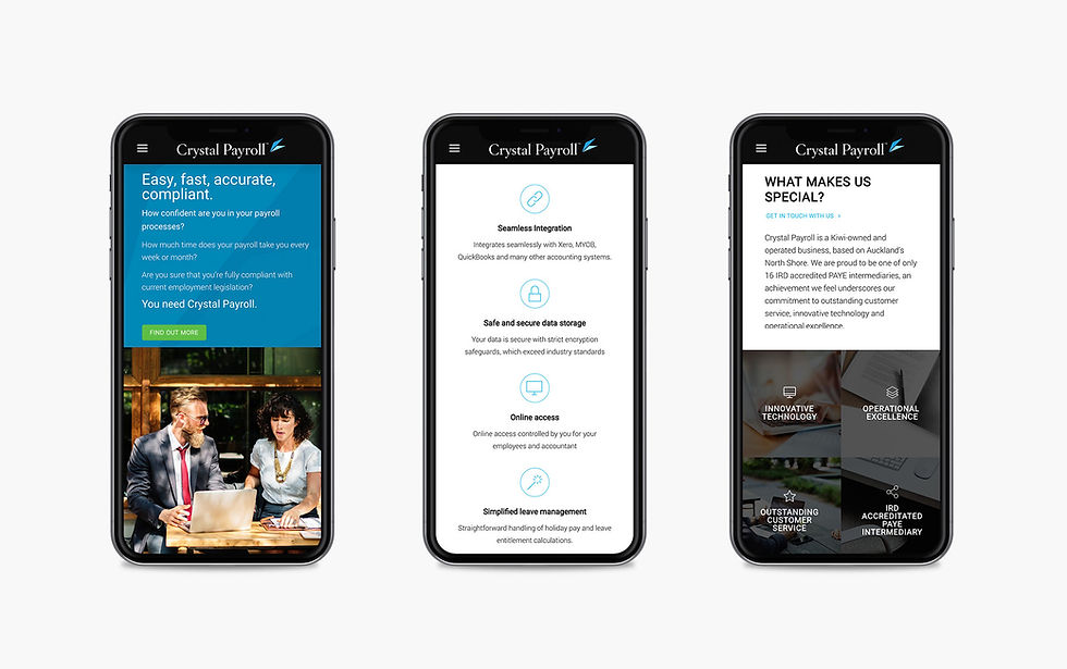 In collaboration with Crystal Payroll, a Kiwi-owned business offering cloud-based payroll solutions, I revamped their digital presence and marketing materials. The project encompassed a redesign of their website and marketing collateral while adhering to their established brand identity.